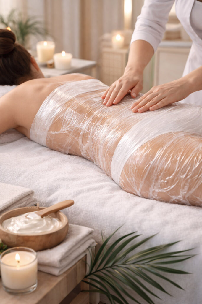 Το Body Wrap αποτελεί μία θεραπεία αισθητικής σώματος που συνδυάζει επιστημονικά τεκμηριωμένη δράση με μια εμπειρία χαλάρωσης. Μέσω της εφαρμογής των κατάλληλων προϊόντων και της περιτύλιξης του σώματος με ειδικά επιθέματα ή μεμβράνες, δημιουργούνται συνθήκες ήπιας θερμότητας και αυξημένης μικροκυκλοφορίας, οι οποίες διευκολύνουν τη διείσδυση των συστατικών  και ενεργοποιούν τη λιποδιάλυση και τη λεμφική παροχέτευση.